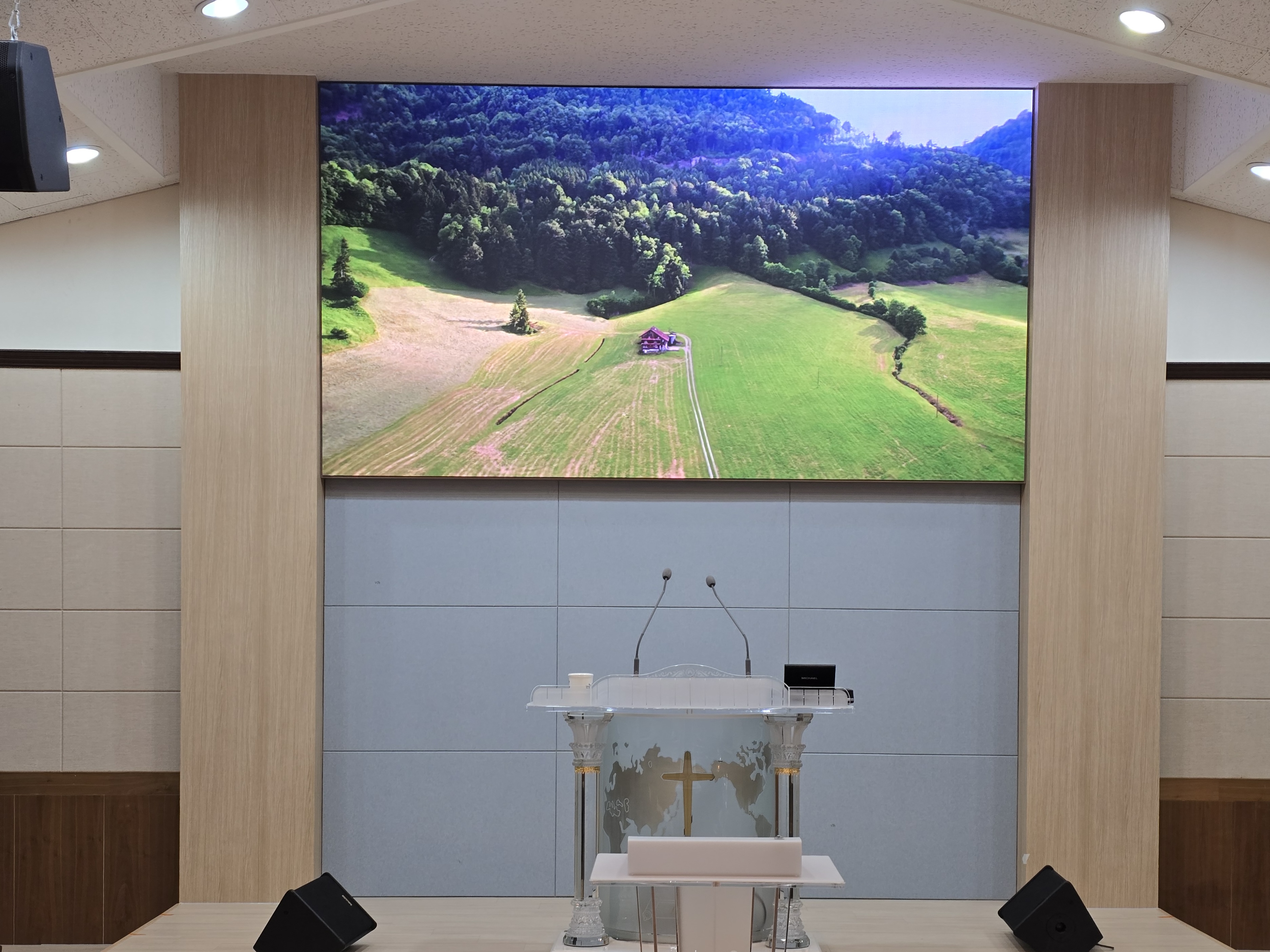 화순 늘푸른교회 본당 규모와 시야각을 고려해 p2.0mm, 3200mm x 1760mm규격의