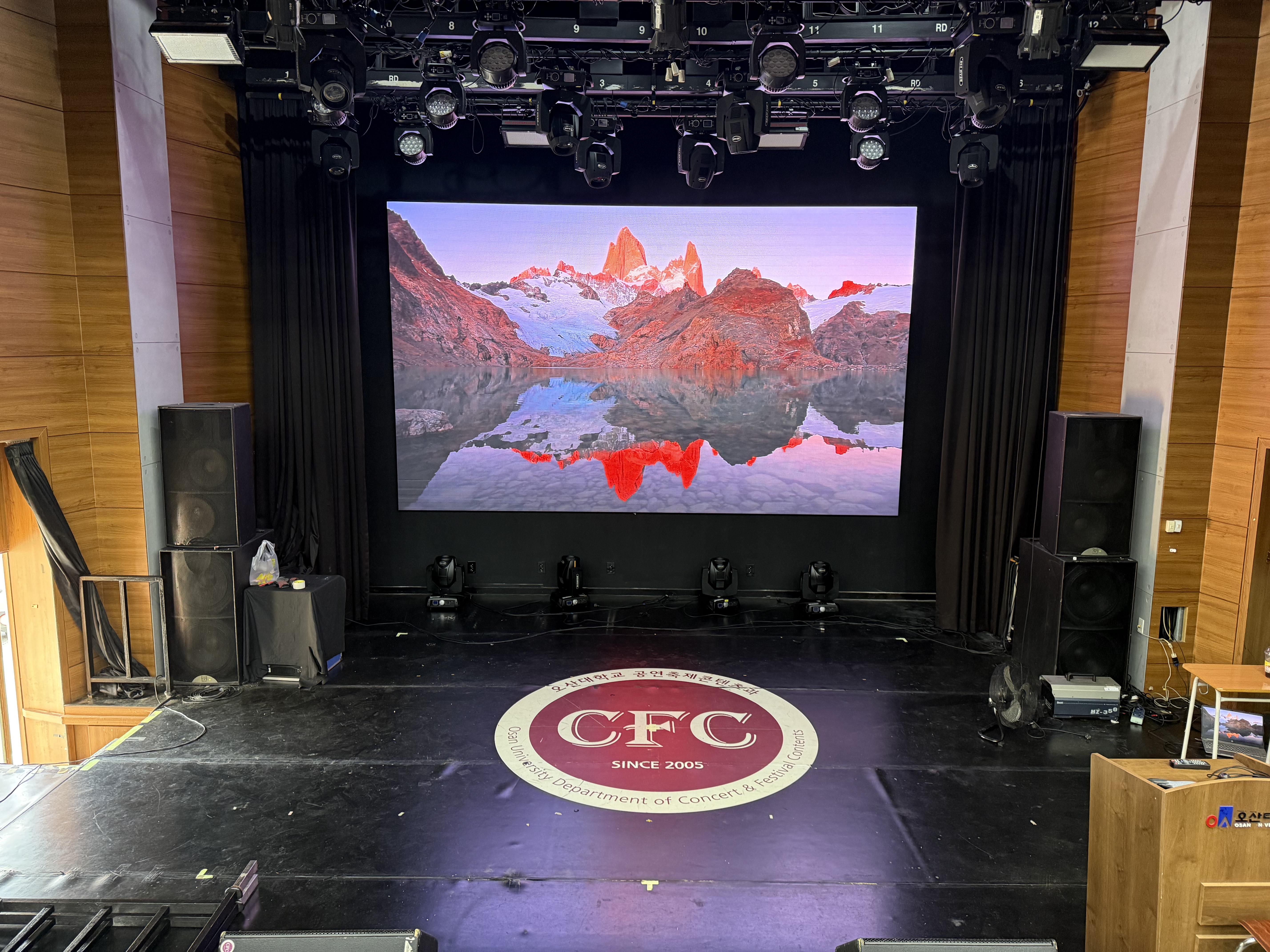다양한 텍스트 동영상을 대형화면으로 무대배경 교육자료로 활용가능