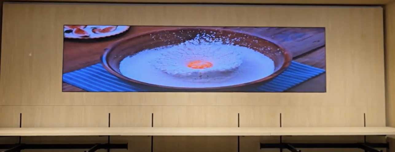 LED스크린 위치를 선정했습니다. 매장 환경에서도 선명한 화면 표현이 가능하도록 밝기와 화면 균일도를 고려해