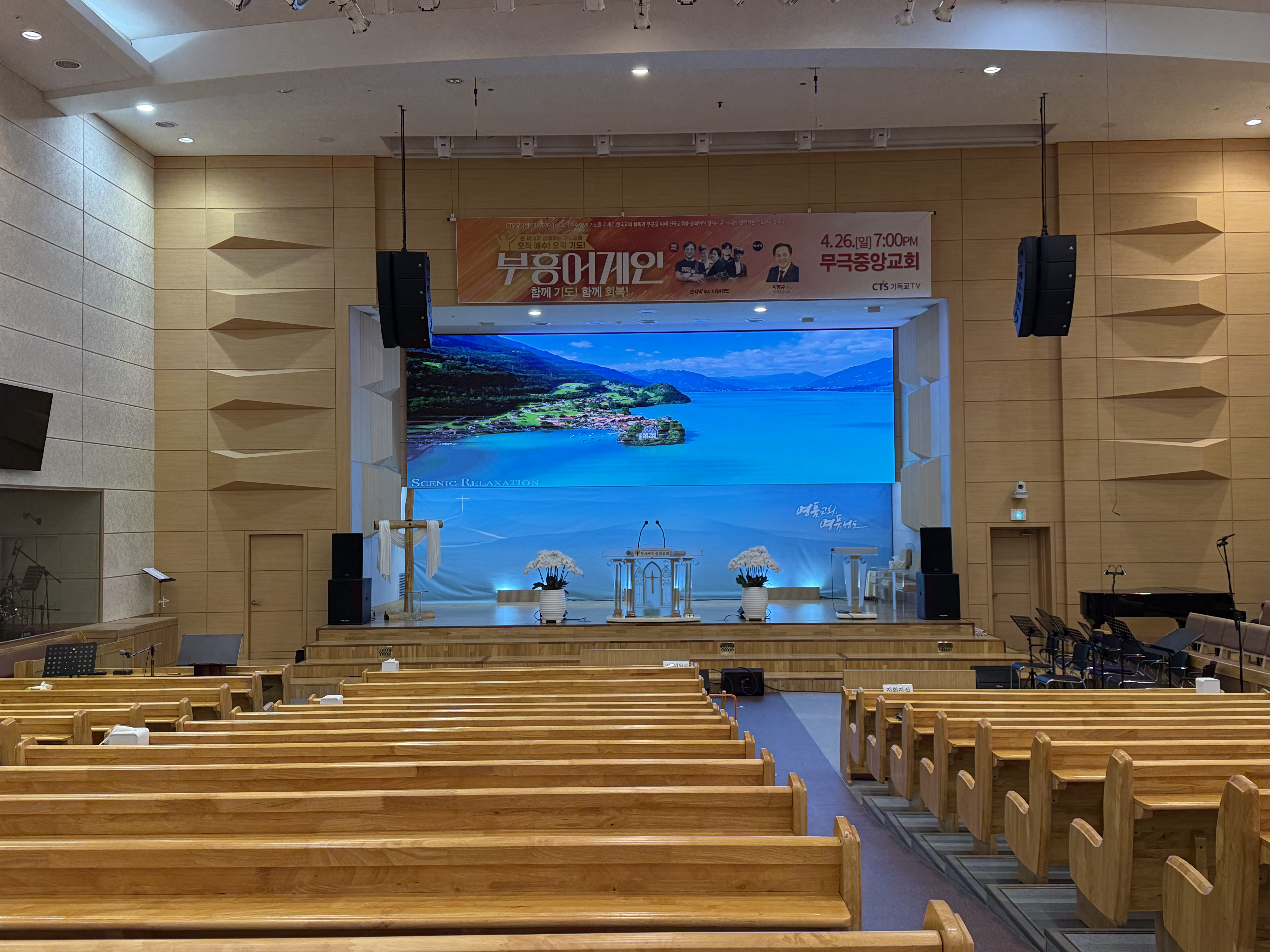 음성 무극중앙성결교회 본당에 P2.0mm 고해상도LED전광판을 설치했습니다.