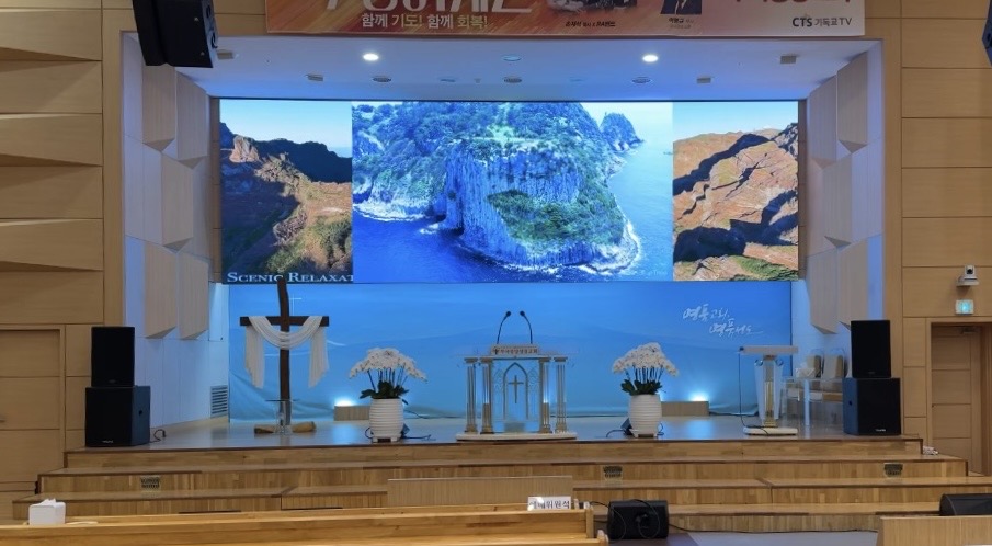 본 현장은 교회 본당 무대 전면에 대형 LED 전광판을 설치 하는 작업으로,