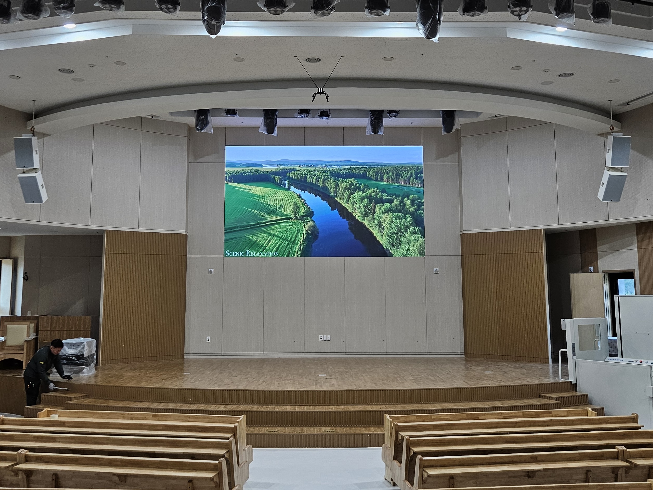 시공을 진행했습니다. 교회 예배 환경에서도 멀리서 또렷하게 화면을 확인할 수 있도록 밝기와 시야각을 고려해
