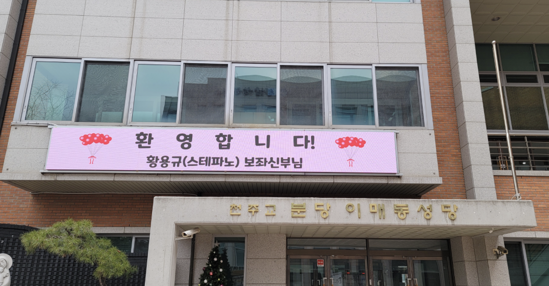 분당 이매동성당 건물 외부 출입구 상단에 전자현수막(LED전광판)을 설치했습니다.