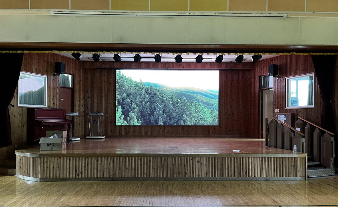 횡성 대동여자중학교 강당 전면에 P2.5mm LED스크린을 설치해