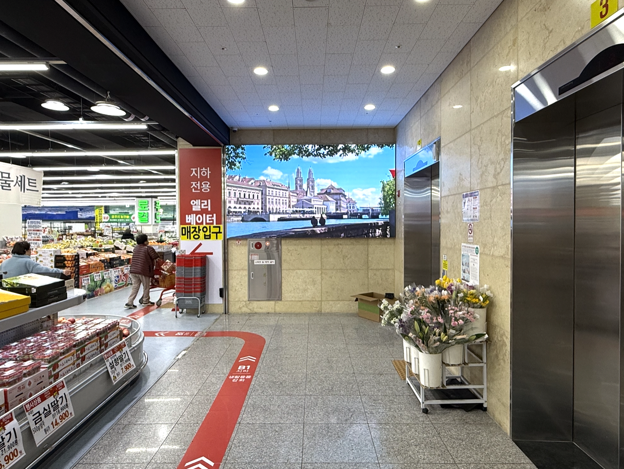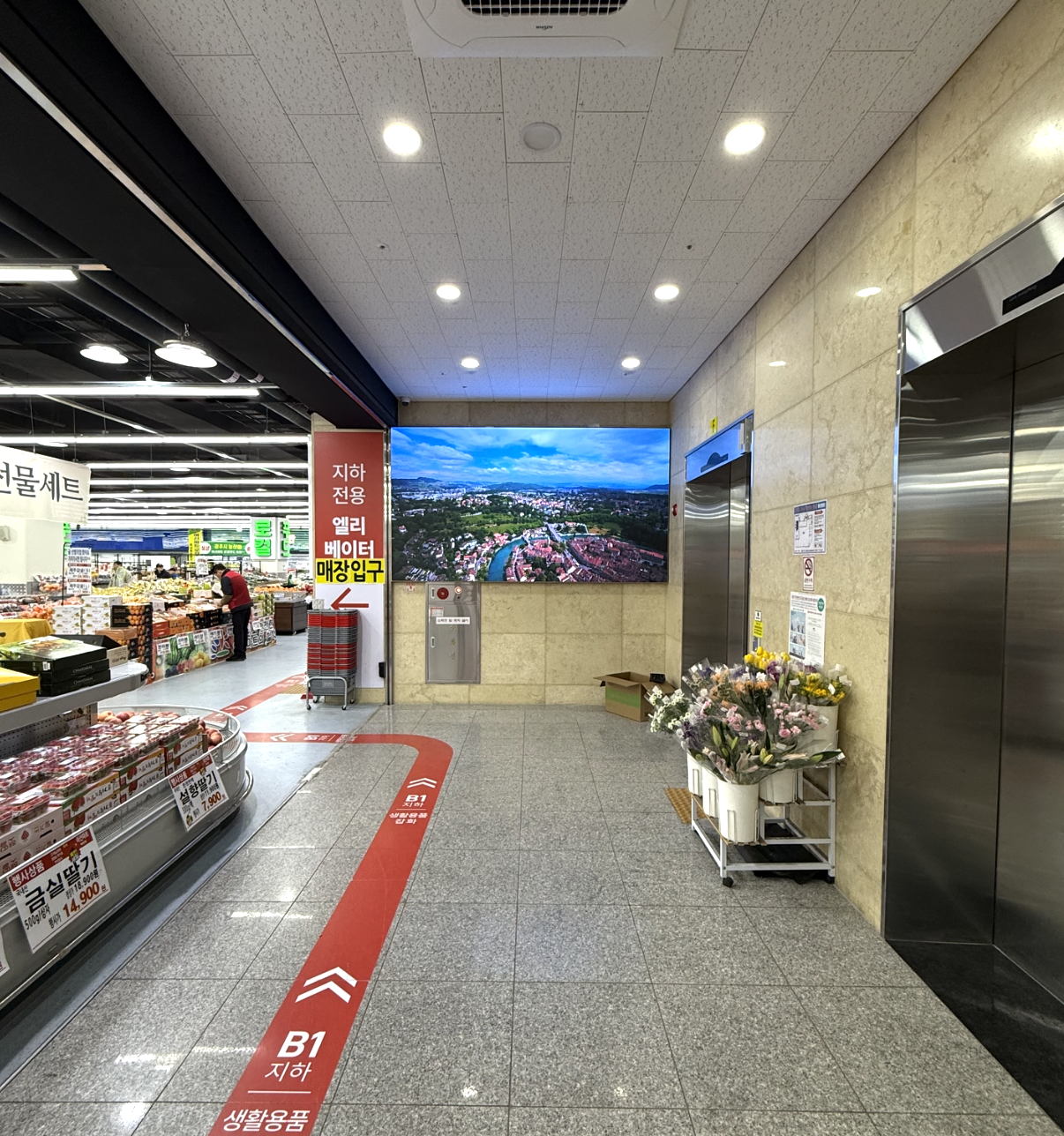 아산마트 배방점 매장에 144인치 LED스크린을 설치해