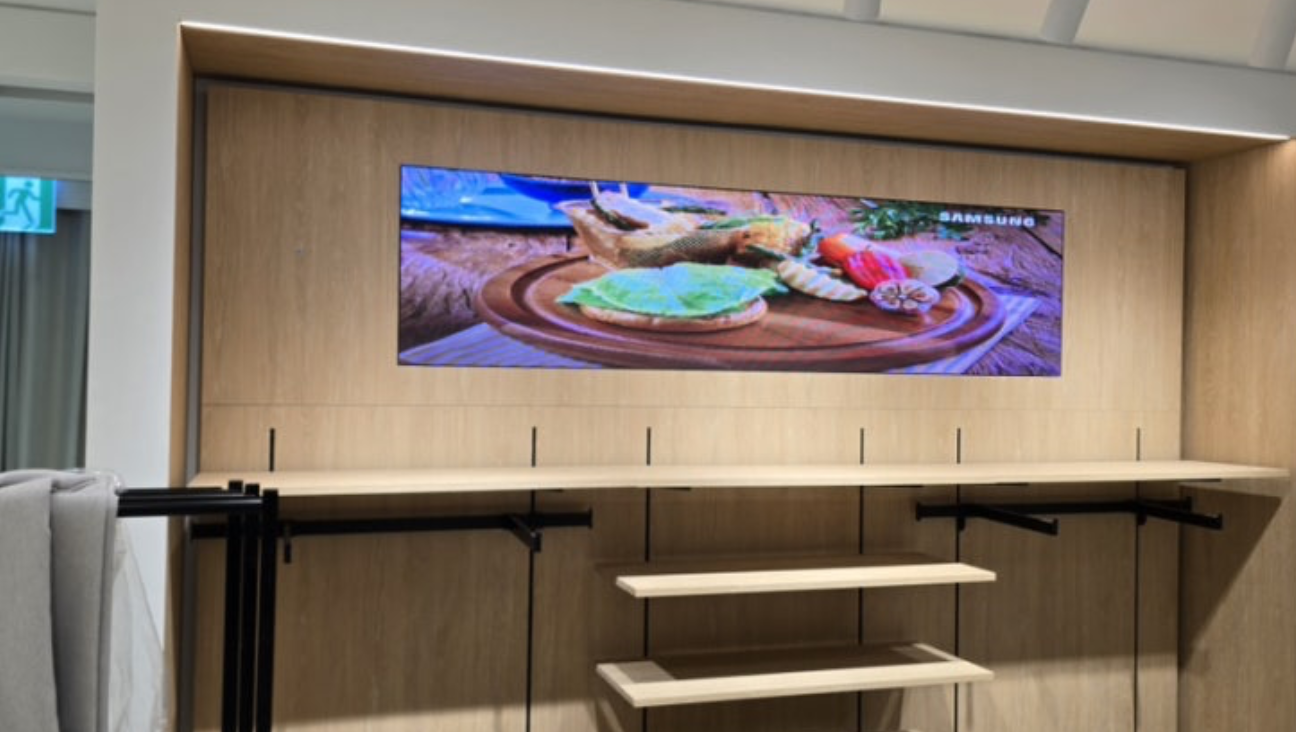 LED스크린 위치를 선정했습니다. 매장 환경에서도 선명한 화면 표현이 가능하도록 밝기와 화면 균일도를 고려해