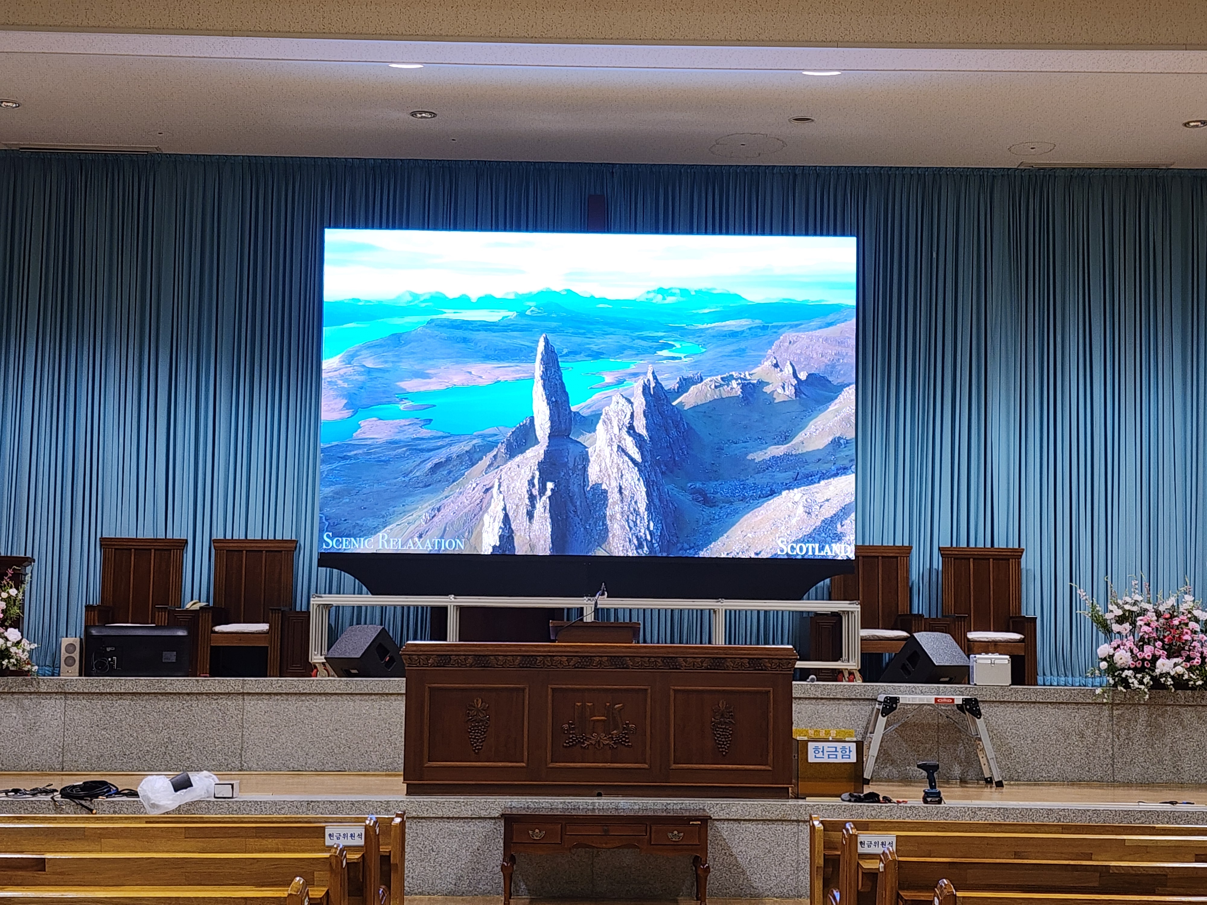 이번 현장은 교회 예배당 내부 환경을 고려하여 대형 LED스크린을 설치한 사례입니다.
