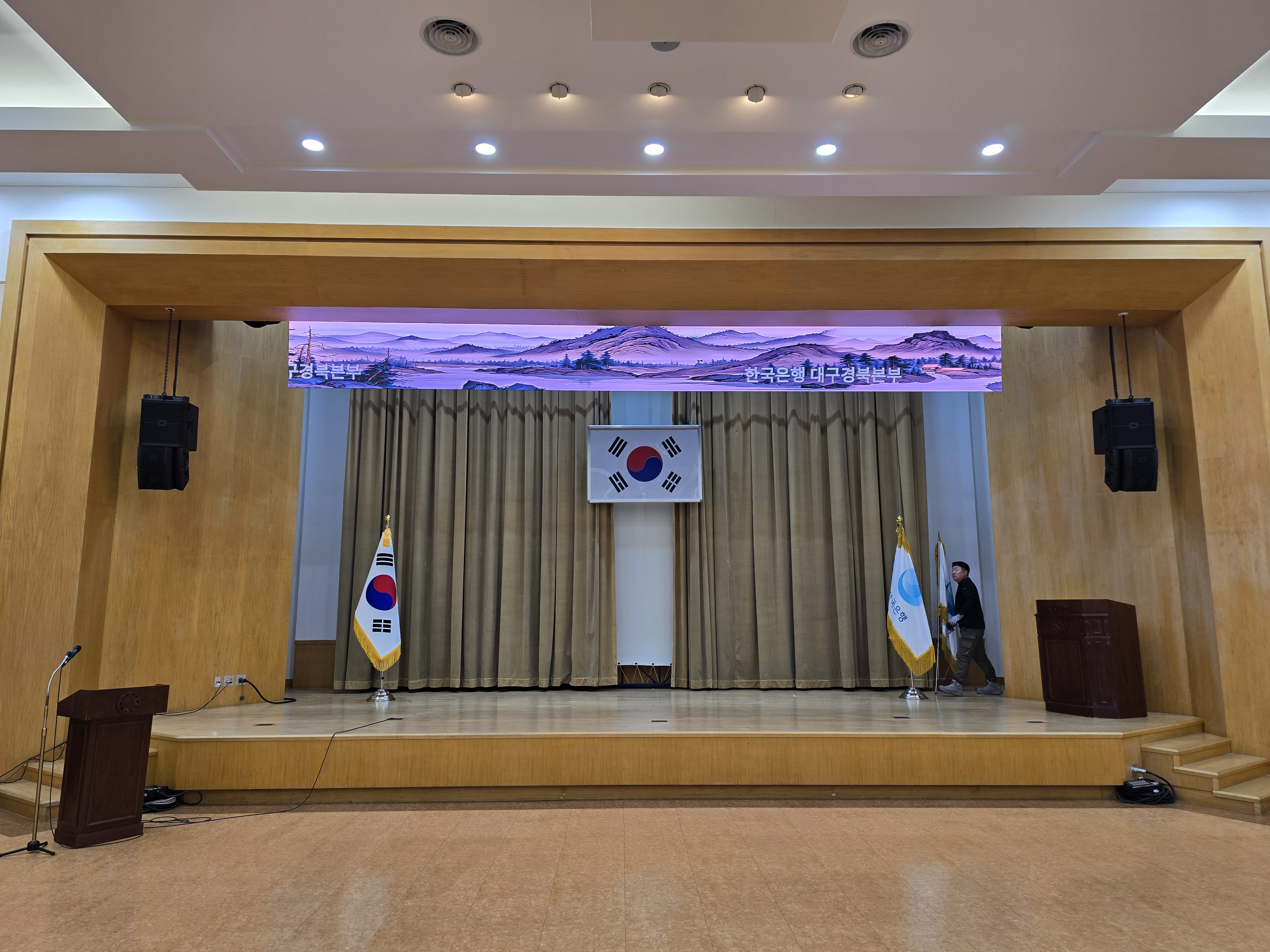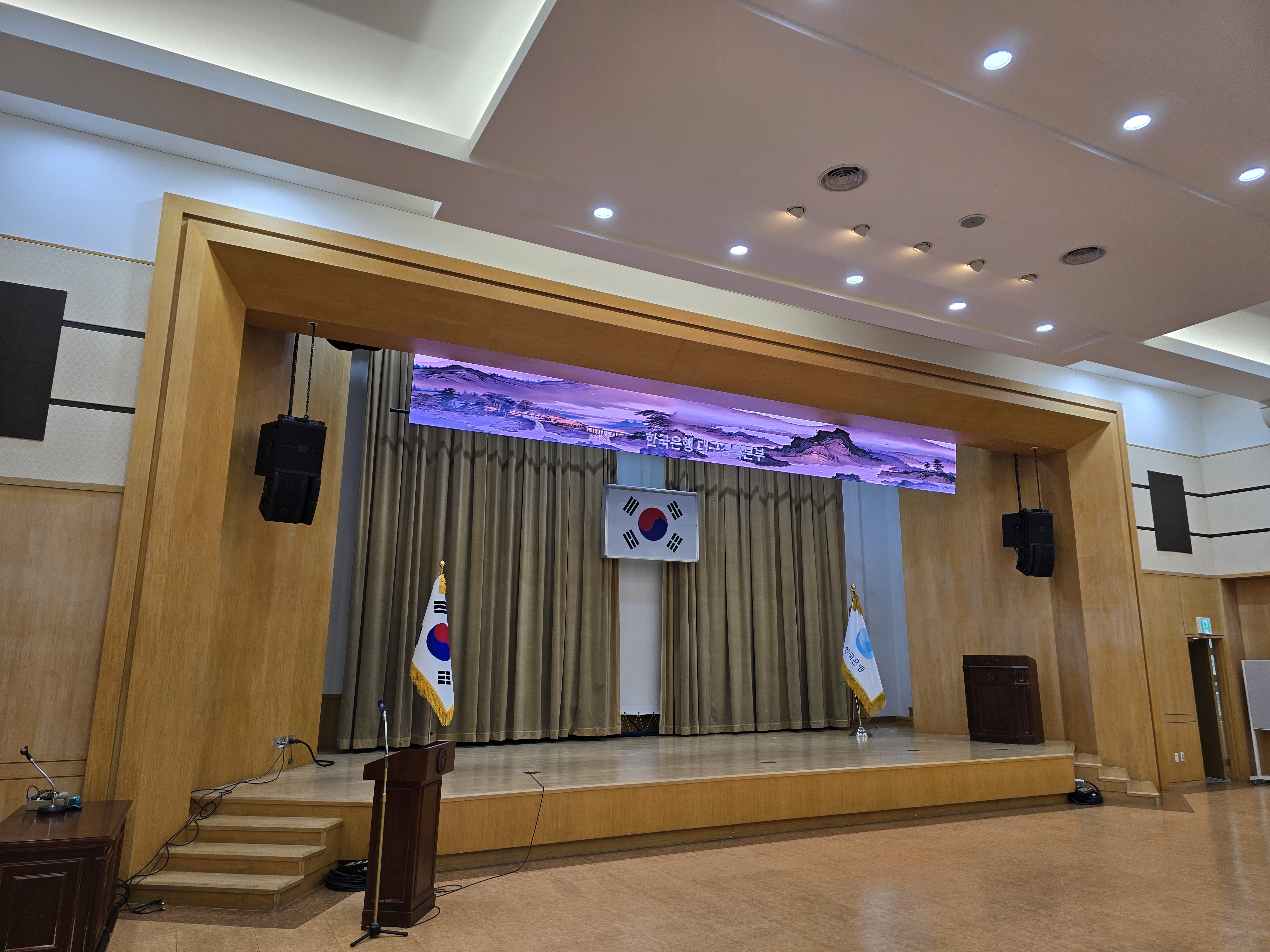 한국은행 대구경북본부 내부 공간에 8000mm x 750mm 와이드LED스크린을 설치했습니다.